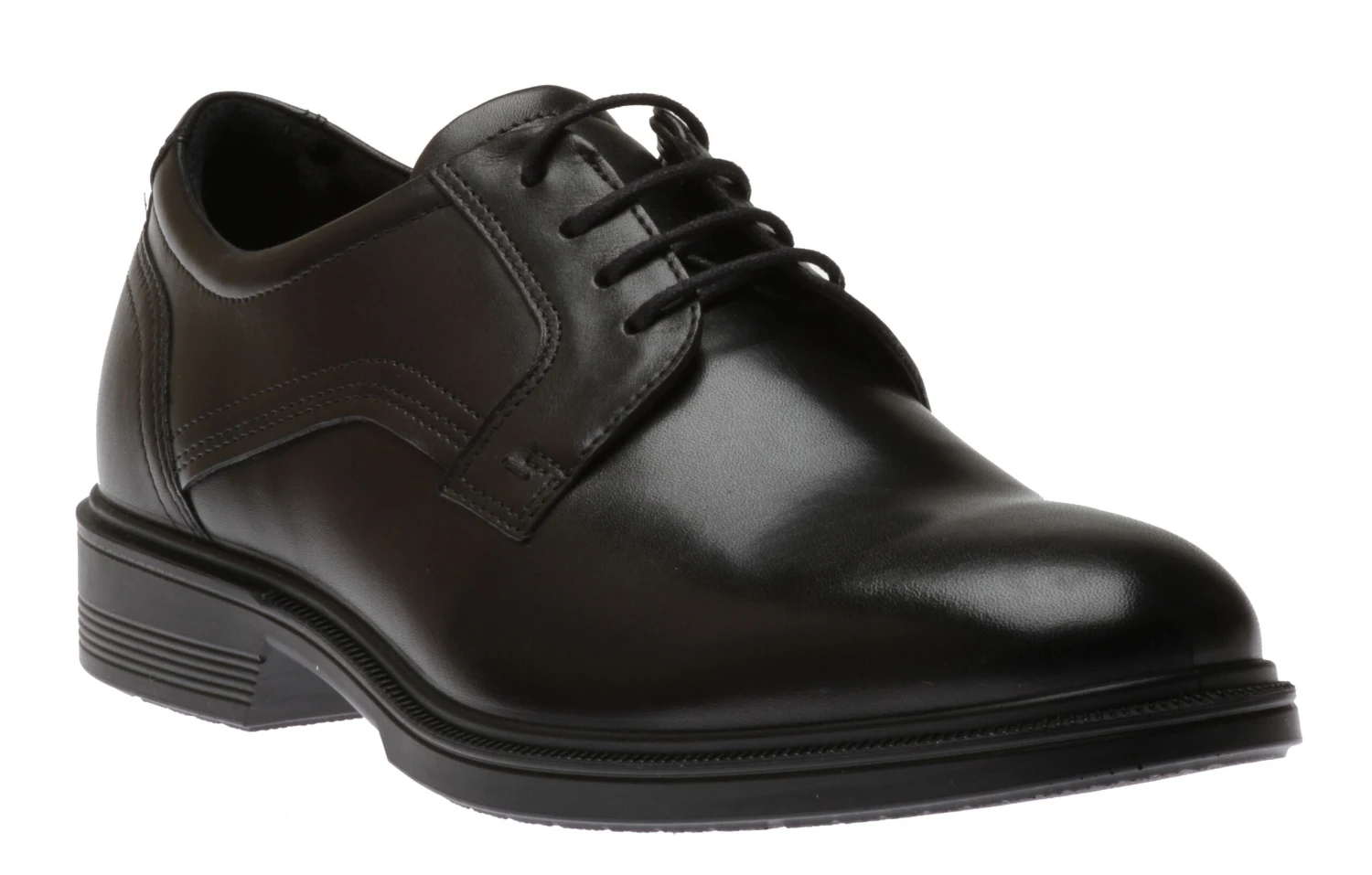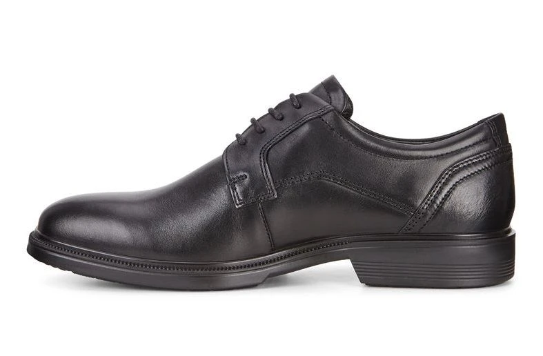 This classic Lisbon plain toe dress shoe is crafted from premium full-grain leather and features adjustable laces for a secure, comfortable fit. Inside, a removable leather-covered thick inlay sole is enhanced with the Ecco Comfort Fibre System™, which circulates air to keep feet fresh and dry. A flexible lightweight direct-injected polyurethane outsole provides secure comfortable traction.